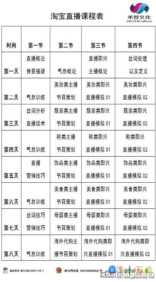 课程内容:声音塑造,即兴淘宝主播,上播技巧,直播营销技巧,直播话术,美妆类策划以